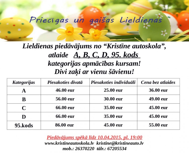 Lieldienas piedāvājums no "Kristīne autoskola".