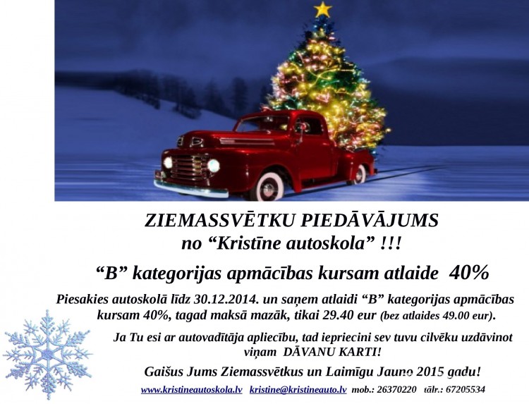 Izmanto ZIEMASSVĒTKU PIEDĀVĀJUMU, noslēdz līgumu šogad līdz 30.12.2014. un sāc mācīties 2015. gadā! |