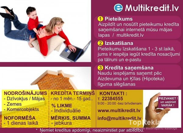 - ONLINE pieteikums - Aizpildiet un nosūtiet pieteikuma e-formu, sk. mūsu mājas lāpa internetā/ multikredit