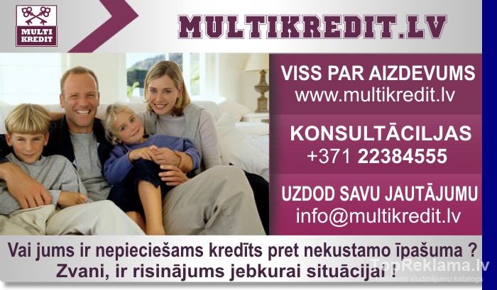 - Aizdevums pret: Dzīvoklis, Māja. Ēka. Jaunbūve. Zeme. Komercobjekti.