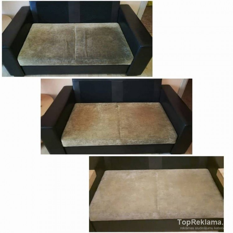 Piedāvajam profesionālu dīvānu, matraču un krēslu ķīmisko tīrīšanu, izbraucot pie klienta. Tīrīšana notiek klienta mājās vai ofisā. Veicot darbus, izmantojam tikai profesionālu tehniku un antialerģiskus un ekoloģiskus tīrīšanas līdzekļus, kas neizraisa nepatīkamas smakas vai alerģijas. Izmantojot mūsu pakalpojumus, mēbele tiek pilnībā atbrīvota no putekļiem, putekļu ērcītēm, baktērijām un traipiem, pēc tīrīšanas mēbeles izskats un krāsas acīmredzami uzlabojas, telpas gaiss kļūst svaigāks. Pēc tīrīšanas mēbele paliek viegli mitra un pilnībā izžūst 6-12 stundu laikā.