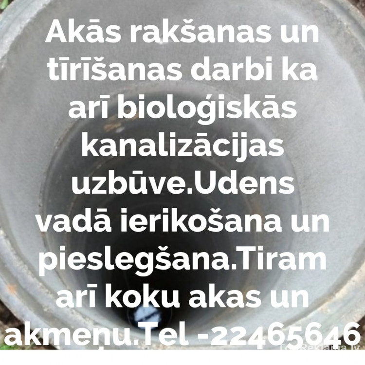 Akas rakšanas un tīrīšanas darbi ka arī bioloģiskās kanalizācijas uzbūve. Tel -22465646