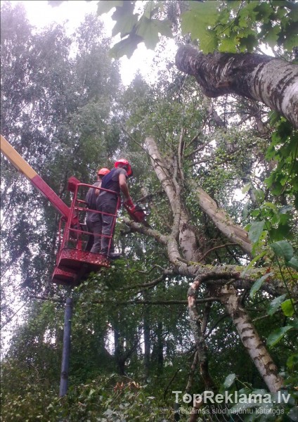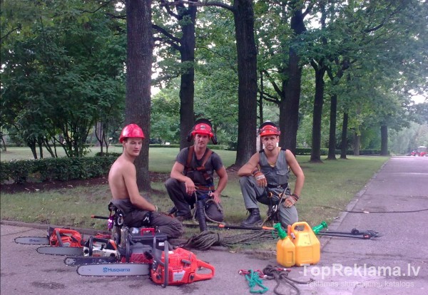 Bīstamo koku zāģēšana, koku vainagu veidošana, atsevišķu zaru izzāģēšana, zaru izvešana, ciršanas atļauju saskaņošana ar attiecīgajām institūcijām. Pa visu Latviju.