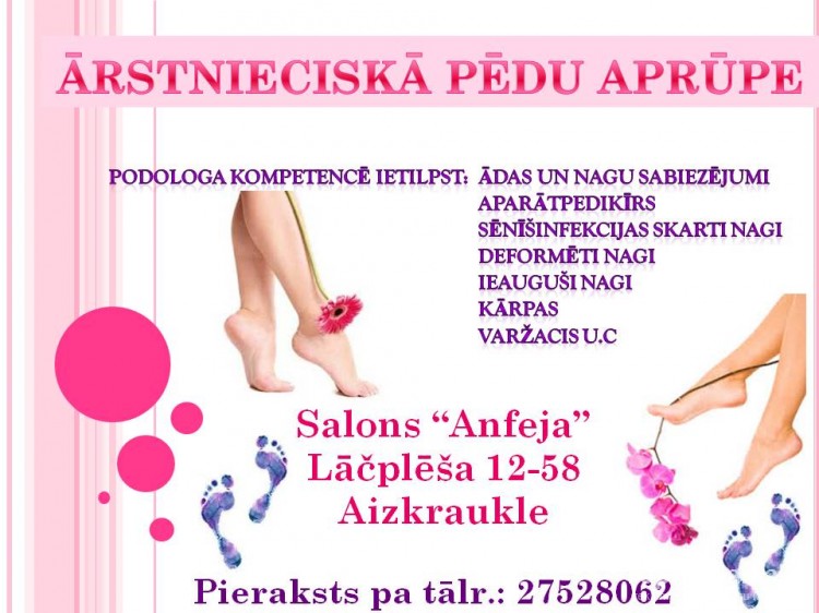 Diplomēts podologs veic ārstniecisko pēdu aprūpi.