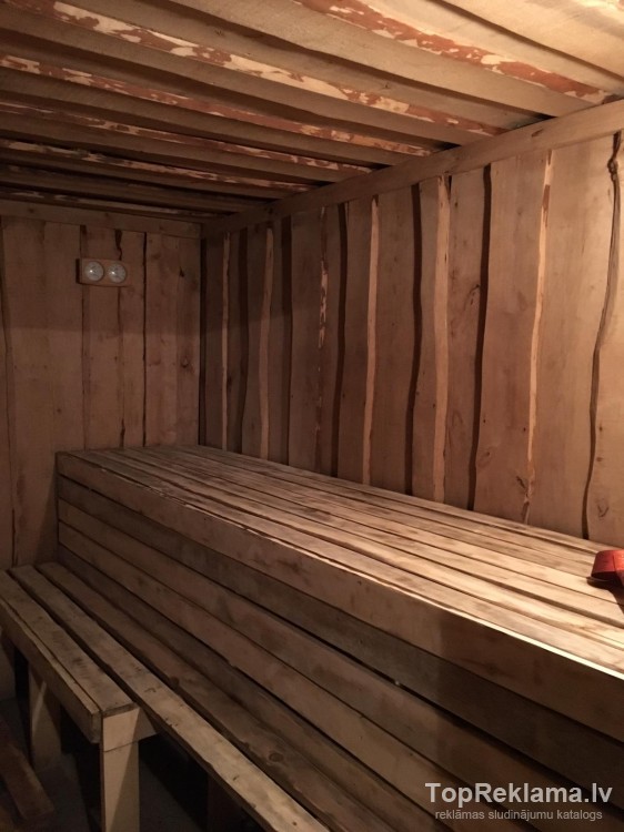 Pirmajā stāvā atrodas pirts ar krievu krāsni, atpūtas telpa un duša. Ir pieejamas pirtslotas,nepieciešamais aprīkojums.