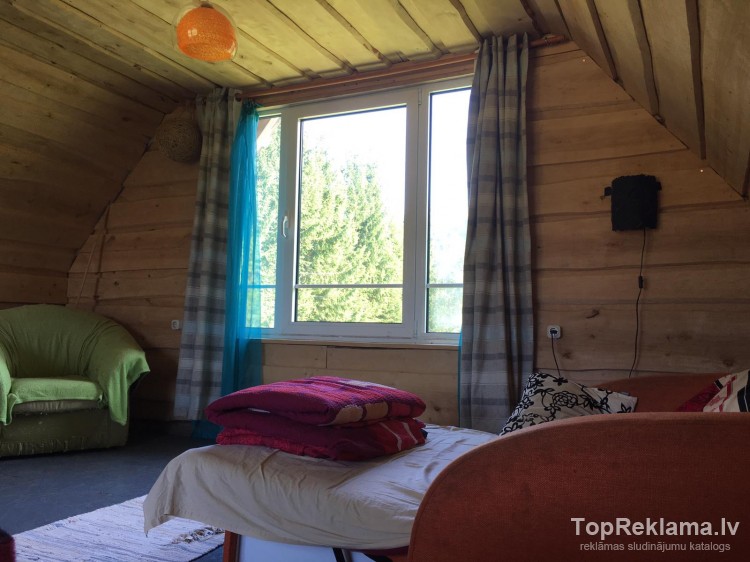 Otrajā stāvā atrodas plaša atpūtas telpa ar balkonu un guļamvietām. Istaba ir ērti iekārtota jaukai atpūtai no 2 līdz 6 personām.