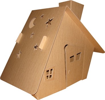 Saliekami kartona rotaļu namiņi ir no izturīga 7 mm bieza gofrēta kartona.