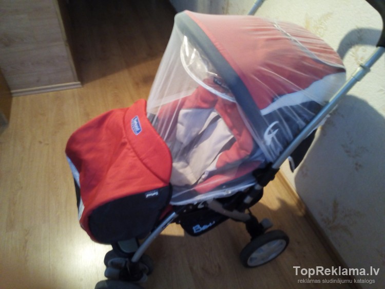 теплый чехол на ноги, перекидная ручка;мягкий и объемный матрасик, материал прошит светоотражающим элементом, 3 положения спинки, 5-ти точечные ремни безопасности, Цена 35 евро. Находится в Вангажи.