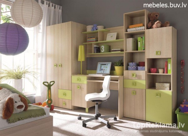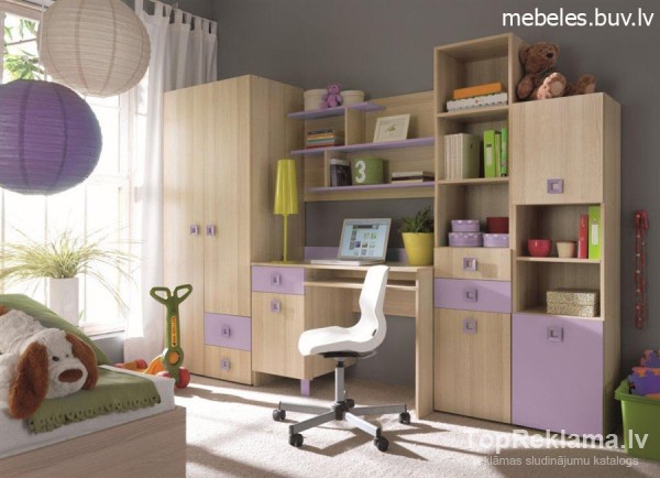 Pavasara jaunums - moderna sekcija bernu istabai SOLO (Intermeble), krasa osis/zals abols, osis/violeta. Platums 270 cm, Augstums 186 cm, Dzilums 52 cm. Materials - laminats. Iespejams pasutit katru elementu atseviski majas lapa!