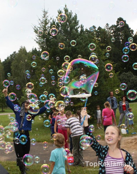 -lielo burbuļu mašīna- radām lielos burbuļus, ik katrs var izmēģināt savu roku burbuļu izpūšanā;