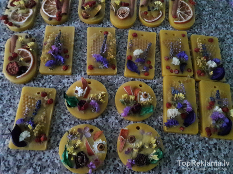 No bišu vaska izgatavotas dažādu formu dāvaniņas “Sašē”, kas piesūcinātas ar dabiskajām ēteriskajām eļļām. Var izmantot kā rotājumu eglītei, kā dizaina elemtu telpā, mašīnā. Šašē var lietot kā aromatizētāju skapī un mašīnā, bet vēl spēcīgāku smaržu var iegūt, ja šo Sašē izkausē aromalampā. Ja izmanto pirtī, tad ieteicams ielikt trauciņā, jo vaska kušanas temperatūra ir sākot no +61°C , un vasks paliek šķidrs.
