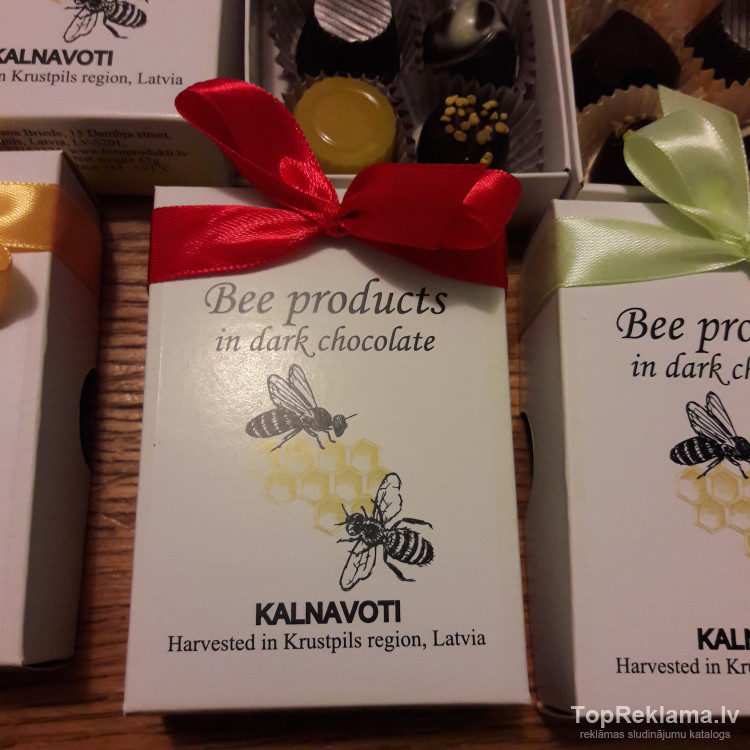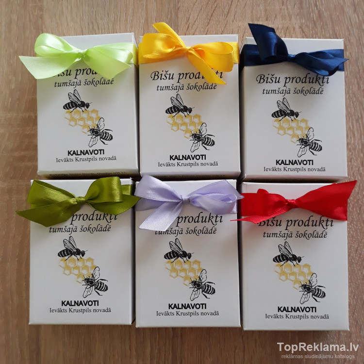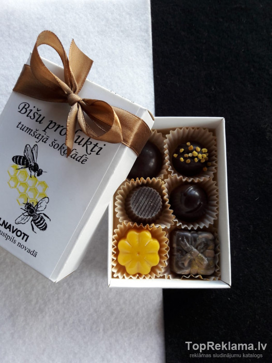 Orģināla ideja kāzu viesu apdāvināšanai vai kā prezenti "Bišu produkti tumšajā šokolādē"