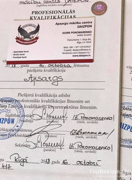 Mēs atrodamies Čiekurkalna 1.līnija 84, Rīga. Akreditēts apsardzes mācību centrs "Daizpon".