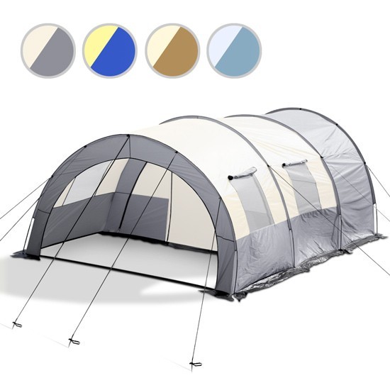 Liela un komfortabla tuneļveida telts ar priekšnamiņu.