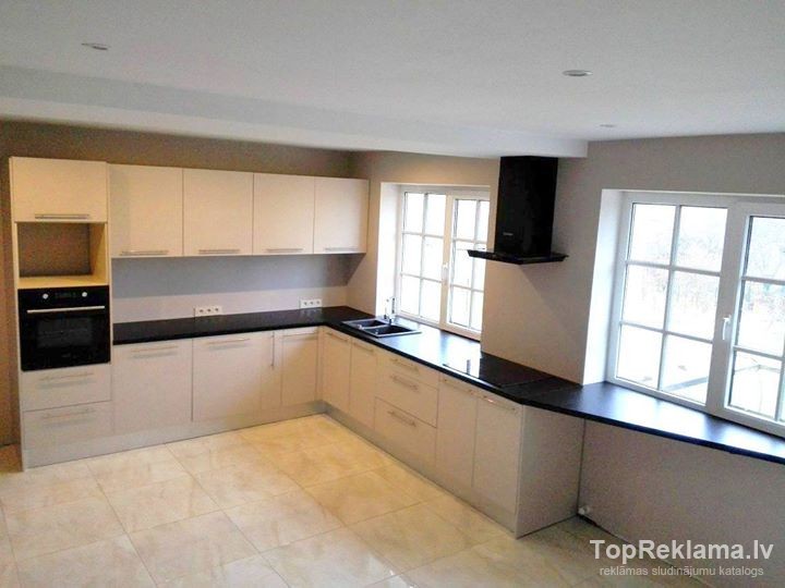 Uzmēram, izgatavojam, piegādājam, uzstādam (ieskaitot kanalizācijas un elektrības instalācijas) Virtuves mēbeles un iebūvējamos skapjus.