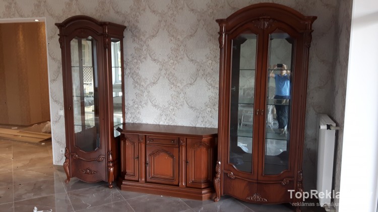 - montēju skapjus, sekcijas, kumodes, bērnistabas, divstāvu gultas, gultas, plauktus, virtuves utt.,