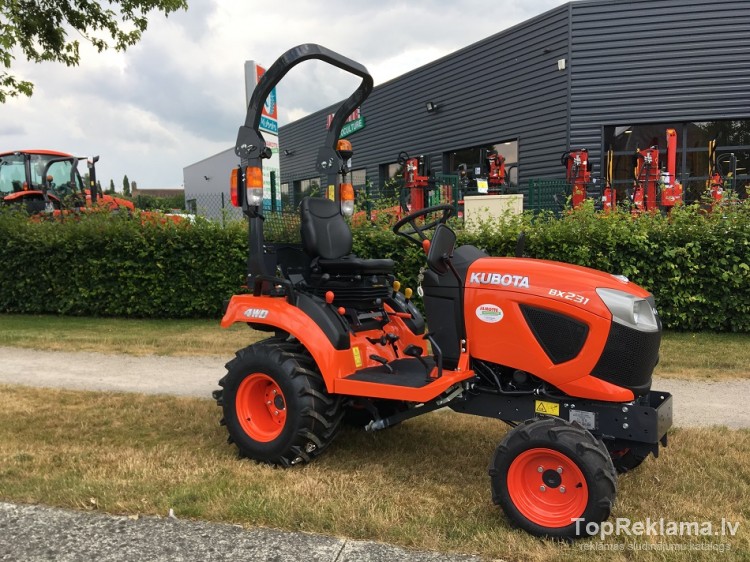 | BX 231 2017. gada KUBOTA TRAKTORS, 23 ZS, 3 cilindri, darba tilpums 898 cc, 710 kg; 2564 darba laiks. Aprīkojums: 3 punktu aizmugures pacēlājs, priekšējais jūgvārpsta, aizmugurējais jūgvārpsta, piekares stienis, stūres pastiprinātājs, lauksaimniecības riepas, kūdras vai rūpnieciskās, homologācija uz ceļa, 2 divkāršās darbības hidrauliskie vārsti, 4WD, hidrostatiskā kārba, 2. garantija gadiem. |