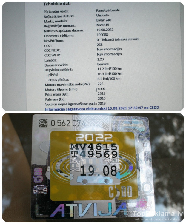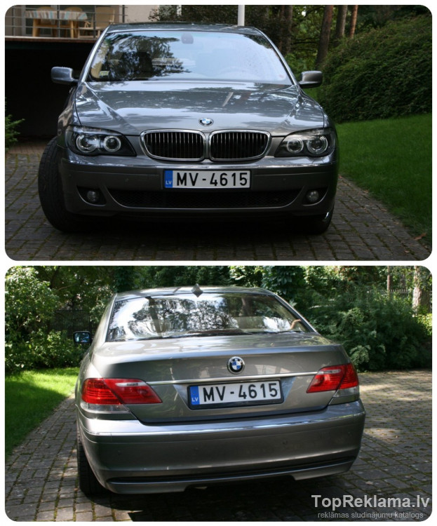 Izcilā un nevainojamā kvalitātē luksus auto BMW 740 Li (pagarinātā versija),V8 ar 4,0 L benzīna dzinēju. Jaudīgs, komfortabls, rūpīgi kopts, ļoti tīrs, bez rūsas, kā jauns. Pieejama pilna servisa vēsture un pierādāms faktiskais nobraukums. Automašīna vizuāli un tehniski ideālā stāvoklī, neprasa nekādus ieguldījumus. Tikko izieta teicamā kvalitātē tehniskā apskate. Līdzi nāk gandrīz jaunas ziemas riepas ar diskiem. Bagātīga luksus auto komplektācija. Garāžas auto. Ceļa nodoklis par 2021. gadu nomaksāts. Apskatīt var Rīgā, Mežaparkā. Pārdod īpašniece. EUR 10700