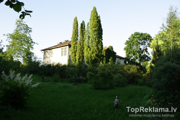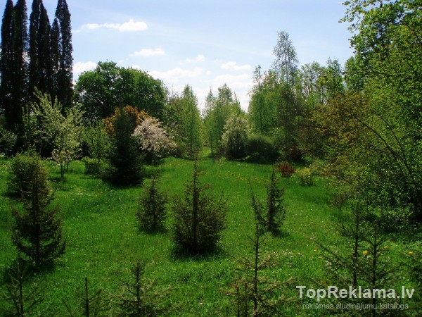 aiz mājas skaista izkopta bērzu birztaliņa ar platību 0, 1 ha, uz piemājas zemes aug milzīgs Amūras ceriņš, Grieķu riekstkoks, Ciedru priede utt. ,