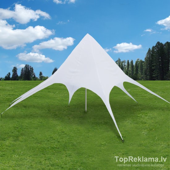 Šī zvaigznes veida telts ir ļoti ērti uzstādāma un noderēs arī lielāku pasākumu norisei.