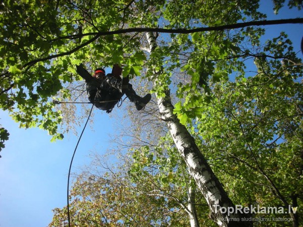 Koku zāģēšana, bīstamo koku zāģēšana ar klasisko zāģēšanu, alpīnismu, arborismu un pacēlāju visa veida situācijās.