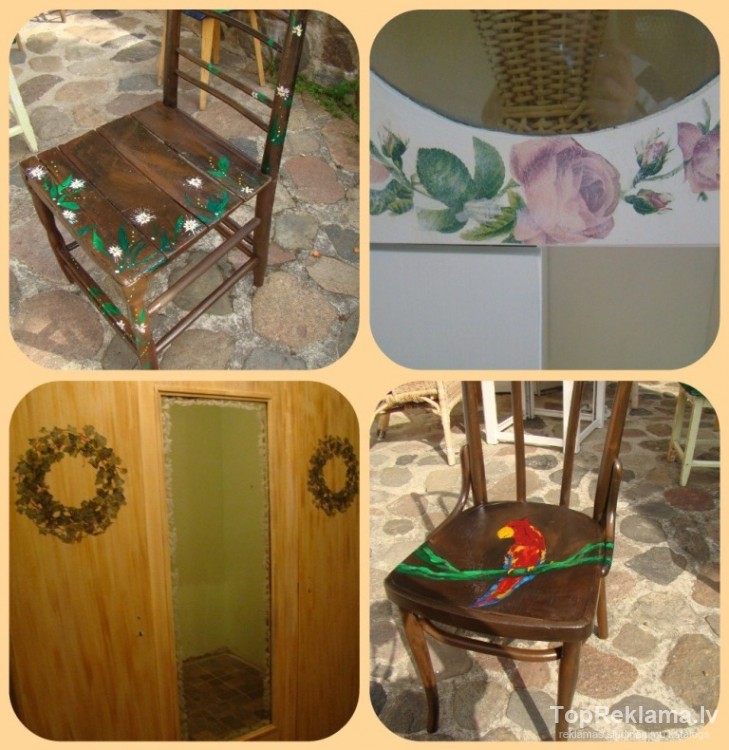 Piedāvāju izveidot un realizēt dzīvē Jūsu izsapņoto interjeru -dzīvoklī, mājā, birojā. Apdares materiālu, mēbeļu piemeklēšana,elektrības plāni, vizualizācijas (3 D). Dekoratīvā sienu apgleznošana . Konsultēju interjera stilu un krāsu gammas izvēlē. Gleznas katrai gaumei.