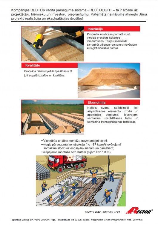 Nepieciešams viegls, drošs un ātri montējams pārsegums? Gribat nopirkt to par 22 EUR/m2 ar PVN? Zvaniet tūlīt „RECTOR France” pārstāvim Latvijā - 26897430! www.murbet.lv