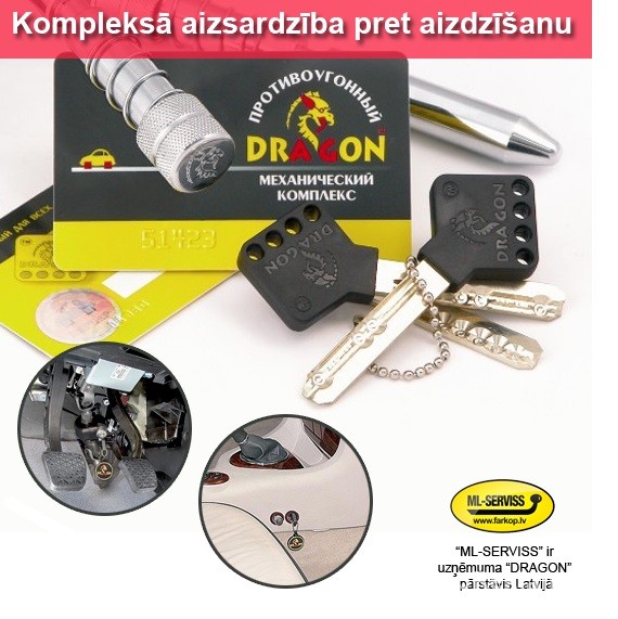 Предлагаем к продаже и устанавливаем уникальные механические противоугонные системы DRAGON - на рулевой вал и коробку передач. Системы практически незаметны в салоне. Замки систем надежно противостоят любым способам взлома, проворачиванию, высверливанию и делают безнадежными попытки справиться с блокиратором с помощью ручного инструмента. Системы сертифицированы. DRAGON. Единственный для всех. Неповторимый для каждого.