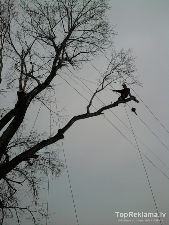 Bīstamo koku zāģēšana, kopšana, zaru apzāģēšana, vainagu veidošana un kopšana.